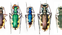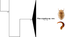 For DNA extraction, amplification and sequencing, we followed the protocols described by Chesters et al.36. Forward and reverse sequences were assembled and reciprocally edited with BioEdit v7.1.3.071. Neighbour-joining (NJ) tree reconstruction was performed by MEGA672 using the Kimura 2-parameter (K2P) model73. Genetic distances were calculated using both K2P distances and the uncorrected p-distance. Bayesian analyses using COI sequences were conducted with MrBayes v3.274 consisting of two Markov chain Monte Carlo (MCMC) analyses run for 4 000 000 generations, sampling trees every 100 generations and using four chains and default priors. The convergence between the two runs was assessed using the average standard deviation of the split frequencies (below 0.01). The two runs were combined after the removal of the first 1 000 000 generations from each run as a burn-in. The HKY + I + G model of evolution for the COI gene was estimated using jModelTest v2.1.375, and it was selected on the basis of Akaike information criterion (AIC), as suggested by Posada and Buckley76. The identification of diagnostic characters within COI sequences was performed in the Characteristic Attribute Organization System (CAOS)77,78. When all members of a species share these characters, they are termed ‘simple pure characters’77.