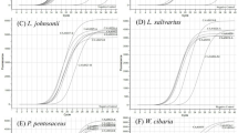 Based on the sequence data generated and the results of the online BLAST analysis, a pair of primers, Crono-F (5′-GGGATATTGTCCCCTGAAACAG-3′), Crono-R (5′-CGAGAATAAGCCGCGCATT-3′), and Crono-P (5′-6FAM-AGAGTAGTAGTTGTAGAGGCCGTGCTTCCGAAAG-TAMRA-3′) were designed to amplify a 78 bp C. sakazakii-specific fragment. A PCR mixture (25 μl) contained 12.5 μl IQ supermix (100 mM KCl, 40 mM Tris-HCl (pH 8.4), 0.4 mM each dNTP, 50 U/ml iTaq DNA polymerase, and 6 mM MgCl2), 900 nM of each Crono-F and Crono-R primers, 250 nM of Crono-P probe, 0.5 U of Taq polymerase, and 2 μl of sample DNA. PCR was performed in an a 48-well thermal cycler (Stepone real-time PCR system, Applied Biosystems, Singapore) using the following conditions: one cycle of denaturation at 95 °C for 3 min, followed by 40 cycles at 95 °C for 15 s, 52 °C for 20 s, and 72 °C for 30 s. The fluorescence was recorded at the end of each annealing step.
