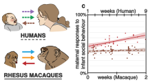 Rhesus monkeys are an ideal study model in which to investigate this issue. Similar to humans, mother and infant macaques form strong bonds, with mothers engaging in a variety of communicative gestures with infants, such as lipsmacking, exaggerated head movements, and mutual gazing22,23. These exchanges seem to resemble the ‘motherese’ that human mothers display towards their infants22. As in humans, the quality of this early social enviroment can have profound consequences on infant’s cognitive and social development, resulting in large variation in social skills in adolescence and adulthood24,25.