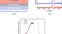 Epitaxial thin films of PTO were grown on well-oriented LAO (111) substrates by PLD. A Lambda Physik LPX 305i KrF (λ = 248 nm) excimer laser was used. Before deposition, the substrate was heated at 750 °C for 20 min to clean the substrate surface and the laser was focused on a ceramic PTO target for 30 min pre-sputtering to clean the target surface. Throughout the deposition process, the substrate temperature was kept at 650 °C, with a laser energy density of 2 Jcm−2, a laser repetition rate of 4 Hz and under an oxygen pressure of 20 Pa. After deposition, the films were annealed at 650 °C in an oxygen pressure of 2 × 104 Pa for 60 min, and then cooled down to room temperature at a cooling rate of 5 °C min−1.