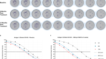 Mice were injected i.p. with 150 mg kg−1 d-luciferin in Dulbecco’s Ca2+/Mg2+ free PBS, then anaesthetized using 2.5% (v/v) isofluorane in oxygen. Images were obtained using an IVIS Lumina II system (Caliper Life Science) 10–20 minutes after d-luciferin administration. Exposure times varied from 30 seconds to 5 minutes, depending on signal intensity. To estimate parasite burden, whole body regions of interest were drawn using LivingImage v4.3 to quantify bioluminescence expressed as total flux (photons/second; p/s). The detection threshold was established from uninfected mice23. Animals with bioluminescence intensity below 5 × 103 p/s/sr/cm2 in both dorsal and ventral images following immunosuppression were designated cured, subject to confirmation by ex vivo assessment.