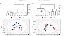 Metabolomic analysis based on UHPLC-MS/MS and GC-MS identified a total of 247 metabolites with known structures in developing maize kernels (Supplementary Table S2). PCA on these metabolites uncovered that PC1, explaining 56.5% of total variance, separated samples at 11 DAP from those at 16 and 21 DAP, and PC2, accounting for 13.0% of left variance, separated SW93 from SW48 (Fig. 2C). Thus, metabolome of kernels at 11 DAP was significantly different from those at 16 and 21 DAP in both cultivars, and metabolomes of SW48 at 11, 16 and 21 DAP were distinct from those of SW93. Remarkably, the metabolite scores of samples at 11 DAP and those at 16 and 21 DAP were distributed on the right and left sides of the plot, respectively, which is similar to the plot of ECGs (Supplementary Fig. S1). Therefore, unless stated, gene expression analysis targets ECGs.