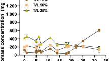 Total lipid content was determined following the Bligh & Dyer method55 with a few modifications as described in Pereira et al.17. Briefly, biomass was extracted with a mixture of chloroform, methanol and water (2:2:1), and homogenised with an IKA Ultra-Turrax disperser (IKA-Werke GmbH, Staufen, Germany) for 2 minutes. Phase separation was achieved by centrifugation, and the chloroform phase was transferred to new vessels with a Pasteur pipette. Afterwards, a known volume of chloroform (0.5–1 mL) was pipetted to pre-weighed tubes and evaporated overnight. The resulting dried residue was weighed and compared with the obtained DW to allow an accurate determination of the lipid fraction.