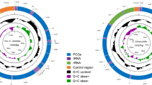 Sequence annotation was performed using NCBI BLAST (http://blast.ncbi.nlm.nih.gov/Blast) and the DNAStar package (DNAStar Inc. Madison, WI, USA). The identity of tRNA genes was verified using the tRNAscan-SE program (http://lowelab.ucsc.edu/tRNAscan-SE/)12. The nucleotide sequences of PCGs were translated with the invertebrate mitogenome genetic code. Alignments of M. flavescens PCGs with various Lepidopteran mitogenomes were performed using Clustal X13. Composition skewness was calculated according to the following formulas: AT skew = [A − T]/[A + T]; GC ske = [G−C]/[G + C]. Codon usage was calculated using MEGA version 6.06. Tandem repeats in the A + T-rich region were predicted using the Tandem Repeats Finder program (http://tandem.bu.edu/trf/trf.html)14.