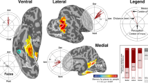 We examined the voxel-wise Pearson’s correlation coefficient between measured fMRI signals and fMRI signals reconstructed by the GLM whose design matrix was defined as corresponding to the full encoding model. When displaying the prediction accuracy (Fig. 2a), we used the 10th and 90th percentiles and median, rather than the mean, of voxel-wise correlation coefficients over the cortical voxels in each ROI, to reflect the intracortical localization of cerebral functions.