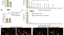 HSCs are localized in a microenvironment known as the stem cell “niche,” where they are maintained in an undifferentiated and quiescent state by various types of niche-related factors21,22,23. Within the niches, the chemokine stromal cell-derived factor-1 (SDF-1, also termed CXCL12) and its major receptor CXCR4 expressed on HSCs are key factors. CXCR4/CXCL12 signaling influences many aspects of HSPC biology including migration, retention within stem cell niches, proliferation and quiescence24,25,26,27,28. Nonetheless, its requirement for HSPC biology remains to be explored. Indeed, significant discrepancies were reported on the effects of CXCR4 deletion regarding the long-term maintenance of the HSC pool using inducible mouse models. CXCR4 deletion achieved with poly(I)-poly(C)-inducible Cre-transgenic mice, resulted in sharp deleterious effects on HSCs, whereas CXCR4−/− HSC numbers were maintained in tamoxifen-inducible Cre-transgenic mice28,29.