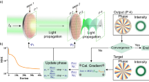 Motivated by the potential of emerging applications, various methods have been used to generate OAM beams outside the laser cavity, such as spiral phase elements13, inhomogeneous birefringent plates (Q-plates)14 and holograms15, usually computer-generated using spatial light modulators. More recently, structured materials (also called metamaterials) have been used to generate and control the OAM of light16,17,18,19. This approach allows much more integrated devices and low loss especially when using all-dielectric metamaterials20,21.