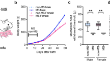 First, we found that neonatal repetitive pain induced persistent mechanical hypersensitivity from childhood to adulthood. This inference corroborates other studies that have indicated that basal or secondary hyperalgesia occurs in young and adult animals exposed to early repetitive procedural pain8,14,39,40. In addition, this study indicates that neonatal repetitive pain might be associated with the alteration of pain pathways in later adulthood8. The direct contribution of HPA axis activity in modulating pain sensitivity is still a matter of debate in the scientific community and more studies are needed.