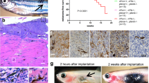 Tumours were fixed in 4% paraformaldehyde, embedded with paraffin, and cut into 4–5-μm sections. The slides were deparaffinised and rehydrated in PBS. Antigen retrieval was performed by microwaving in citrate buffer (pH 6) for 10 min. Endogenous peroxidase was blocked by 3% hydrogen peroxide for 10 min. Slides were blocked with 10% goat serum for 40 min. Primary antibodies were diluted to 1:500 to 1:1000 and incubated at 4 °C overnight. Secondary antibodies were added and incubated at room temperature for 1 h. DAB was used as a chromogen, and slides were sealed with balsam.
