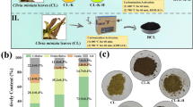 The XRD pattern in the range of 5–85° of the Mg/Al LDHs pre-coated bagasse biomass (LDHs/BM) sample is shown in Fig. 1a. The XRD patterns exhibit the characteristic diffractions of hydrotalcite (indexed by the JCPDS X-ray powder diffraction file of No. 22–700.), indicating that the Mg/Al-hydrotalcite was successfully coated onto the bagasse biomass by liquid-phase deposition method. Some unidentified peaks emerged in the XRD pattern, suggesting the presence of other minerals, which are existed in the bagasse biomass. The XRD patterns of CLDHs/BC showed the disappearance of the peaks of hydrotalcite (Fig. 1a) and the appearance of broad peaks attributed to the formation of Mg/Al mixed oxides. During the pyrolysis of bagasse biomass at 475 °C, hydrotalcite was calcined and resulted in an almost complete collapse of the structure of Mg/Al-LDHs by the decomposition of the hydrotalcite-CO32−, evolving CO2 and water28. Consequently, Mg/Al oxide was formed, which is capable of being restored to hydrotalcite when rehydrated.