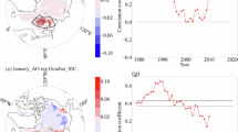 In addition to the extreme Arctic warming, the sea ice concentration along the ice margin of the Barents and Kara seas decreased substantially (Fig. 3c and f). Compared with the first week, the sea ice slightly recovered during 8–20 January due to the changed circulation feature but remained lower than normal. The sea ice reduction caused an increase in the ocean heat release by upward turbulent heat flux anomalies over 70 W m−2 (with a maximum heat flux anomaly of 141 W m−2) along the ice margin for an average of 20 days (Supplementary Fig. S5).