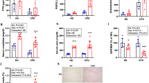 We calculated creatinine clearance by measuring urine volume and the concentrations of plasma and urinary creatinine. Creatine clearance decreased by 45–65% in CKD mice compared with the controls (Fig. 2h) but was not significantly different between the cKO and non-cKO mice in either the non-CKD or CKD group.