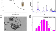 Nanoparticles were characterized by UV-Visible, fluorescence, FT-IR spectroscopy, X-ray diffraction, TEM and SEM-EDX analyses (Fig. 1 Panels A–F). Figure 1A shows the UV-visible spectrum of ZnO-NPs, which exhibits a sharp characteristic peak at ~370 nm at room temperature indicating the purity of ZnO-NPs (Fig. 1A dashed line). Similarly, a sharp fluorescence emission peak (λexc = 320 nm) of ZnO-NPs was obtained at 385 nm (Fig. 1A solid line), which corresponds to the near band gap excitonic emission. No auxiliary band in visible region suggests the absence of oxygen vacancy in ZnO-NPs. FT-IR spectrum of ZnO-NPs shows a distinct absorption bands around wave number of 494 cm−1 (Fig. 1B). The results of XRD, TEM, SEM with EDX providing information regarding the shape, and size of ZnO-NPs are shown in Fig. 1C–F. XRD pattern of 2θ values of ZnO-NPs was obtained in the range of 20 to 80 (Fig. 1C). Diffraction at 31.76°, 34.46°, 36.26°, 47.57°, 56.59°, 62.92°, 66.37°, 66.97°, and 69.09° can be well indexed to 100, 002, 101, 102, 110, 103, 200, 112, and 201 Miller indices (hkl) of hexagonal ZnO wurtzite structure (JCPDS # 36-1451). Average crystallite size of ZnO-NPs (25.5 nm) was calculated based on Full-Width-at-Half-Maximum (FWHM) of 101 crystallite plane of reflection using Debye-Sherrer’s equation. The SEM image at 20,000 X, 25 kV provided the surface characteristic of ZnO-NPs, indicating small and large aggregates of variable sizes (Fig. 1D). The TEM micrograph at 40,000 X, 200 Kv revealed pleomorphic and variable size of ZnO-NPs (Fig. 1E) with an average mean particle size of 21.1 ± 3.6 (Fig. 1F).