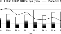 Tenover, F. C., Vaughn, R. R., McDougal, L. K., Fosheim, G. E. & McGowan, J. E. Jr. Multiple-locus variable-number tandem-repeat assay analysis of methicillin-resistant Staphylococcus aureus strains. J. Clin. Microbiol. 45, 2215–2219 (2007).