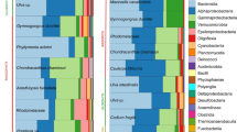 Extraction of chlorophyll a from cells used the method described by Youngman61, with minor modifications, where 5 mL freshly harvested culture were centrifuged for 10 min at 6000 × g. The supernatant was discarded and 5 mL 90% methanol was added to the pellet and heated in a water bath for 10 min at 60 °C. After cooling, the samples were incubated in the dark for 24 h at 4 °C. Then, the samples were centrifuged for 10 min at 4 °C at 6000 × g. Absorbance in the supernatant was recorded at 655 and 750 nm. To quantify chlorophyll a content, we used the equation61: Chlorophyll a (mg·L−1) = [13.9 (OD655 – OD750) × U] / V, where, U is the final volume of methanol and V is the volume of the sample.