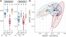 Raw sequences were preprocessed using MiSeq Control Software (MCS) v2.4.1, and split based on sample-specific barcodes. The sequencing reads were removed if their lengths were shorter than 200 nt, their average quality score was < 25, and they contained more than one ambiguous base “N”, primer mismatches or errors in the barcodes. Finally, the processed pair-end (PE) reads were joined together using PandaSeq v2.8 to generate representative complete nucleotide sequences termed “Raw PE”, with default parameters42. De novo and reference-based chimera checking was then performed by blasting the sequences against the Gold database (http://drive5.com/uchime/gold.fa) based on the UCHIME Algorithm43 and raw PE tags that were characterized as chimeras were removed. After filtering of noisy sequences, the effective tags were uploaded into QIIME and analysed as described previously44. Briefly, sequences were clustered into OTUs using the UPARSE software45 with a minimum pair-wise identity of 97%. Each cluster was represented by its most abundant sequence, and representative OTU sequences were then aligned to the Greengenes database (http://greengenes.secondgenome.com/) using assign_taxonomy.py program (http://qiime.org/scripts/assign_taxonomy.html), with a minimum support threshold of 80%. Alpha diversity (number of OTUs, Shannon’s index, Chao1, Phylogenetic diversity_whole tree) and relative abundance of different taxa were calculated by alpha_diversity.py (http://qiime.org/scripts/alpha_diversity.html) included in the QIIME. Using the Vegan package (Version 2.4.0, Department of Statistics, Iowa State University, IA, USA), two different complementary analyses, ANOSIM and MRPP, were used to determine the significant differences in faecal microbiota in response to M. oleifera alternative diets.