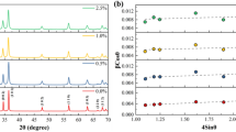 As can be seen from the TEM results (Fig. 2), the SFs induced by the dopants can also affect the band gap energy. It is known that the formation of SFs results in local decreases in band gap because the dopants induce chemical disorder and unsaturated bonds, thus creating localized states in the forbidden energy gap40. The distribution of localized states near the band edge depends on the concentration of structural defects in the semiconducting materials, such as oxygen vacancies and SFs. Therefore, a high concentration of localized states in the doped NRs may have contributed to the narrow optical band gap. The red-shift of the UV peak for the doped NRs may thus result from the combined effects of the increased NR size, the BGR effect, and the formation of SFs.