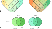 By miRNA-targeted pathway union analysis, there were 55 KEGG pathways significantly (Fisher Exact Probability Test, p < 0.05) related with genes targeted by DE miRNAs (Fig. 5). Numerous pathways including the plant hormone signal transduction, oxidative phosphorylation, ascorbate and aldarate metabolism, flavonoid biosynthesis and phenylalanine metabolism were involved in salt and dehydration response. It was worthy to note that some pathways were especially involved in dehydration stress including calcium signaling pathway, MAPK signaling pathway and zeatin biosynthesis, and some pathways such as tryptophan metabolism, propanoate metabolism and fatty acid metabolism were only responded to salt treatment.