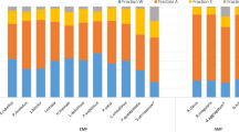 Standard nomenclature for fatty acid characterization was used40. Individual fatty acids were designated according to convention by the total number of carbon atoms, number of double bonds, then followed by the position of the double bond from the methyl-end of the molecule. For unsaturated fatty acids, ωn follows, where n indicates the position of first carbon of the double bond from the aliphatic end of the molecule. The prefixes i and a indicate iso- and anteiso-branching, respectively, and cy indicates cyclopropane fatty acid. Me refers to the position of the methyl group from the carboxyl-end of the chain. Fatty acids were classed into different groups (bacterial, fungal and actinomycete), and used to indicate their respective biomass estimates, according to Leckie41.