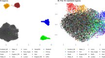 Maximum likelihood estimation of individual ancestries was carried out using ADMIXTURE version 1.2329 and a dataset that had been pruned with respect to LD, as recommended by the authors29. This was achieved using plink 1.925,26 with the—indep-pairwise command, using a window of 1000 SNPs moving every 50 SNPs, with an r2 threshold of 0.2. For this analysis we used a combined dataset of 42 Irish Travellers, 40 randomly selected Irish individuals from the Trinity Irish cohort, 160 individuals from the POBI dataset (40 randomly chosen English, Welsh, Orcadian, and Scottish individuals), and 40 random individuals from each of the following populations within the MS European dataset; France, Germany, Italy, Norway, Finland, and Spain. The combined dataset consisted of 83,759 SNPs (after the removal of A/T or G/C variants), and 476 individuals.