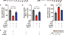 After experimental treatments, cells were washed with PBS and loaded with JC-1 dye (Invitrogen) 5 mg/mL for 20 min at 37 °C. Then cells were washed twice in PBS, and fluorescence was measured by flow cytometer (Beckman Coulter) within an hour. Mean fluorescence intensity was quantized with Expo32 software (Beckman Coulter) and red/green ratio was calculated as an indicator of mitochondrial membrane potential.