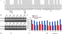Cells were lysed in RIPA (50 mM Tris-HCl, pH 7.5, 150 mM NaCl, 0.1% SDS, 0.5% deoxycholate, 1% NP-40) containing protease inhibitor cocktail and phophatase inhibitor cocktail. Protein concentrations were detected with the BCA protein assay (Pierce, Waltham, MA, USA), and 20 μg of each protein sample loaded onto 10% polyacrylamide gels for SDS-PAGE. Following transfer to PVDF membrane, blots were blocked in 5% milk in TBST and incubated with primary antibodies at 4 °C overnight. Primary antibodies against p-AKT, p-mTOR, p-p70S6K (Cell Signaling Technology, Danvers, MA, USA), β-actin, cyclin D1, TRIM14, AKT (Proteintech Group, Wuhan, Hubei, China), Vimentin and E-cadherin (Santa Cruz Biotechnology) were employed for blotting. After incubation with HRP-conjugated secondary antibody, bands were visualized with the ECL detection system (Millipore, Billerica, MA, USA). Bands were scanned and analysed with ImageJ (National Institutes of Health, Bethesda, MD, USA). β-Actin served as a loading control.