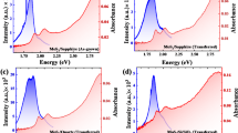 On the other hand, since the band-edge potential levels play a crucial role in determining the migration directions of the photoexcited carriers in a heterojunction, the relative band positions of the two semiconductors have been investigated to approach the mechanism of the enhanced photocatalytic activity of their composites. Significantly, a staggered type-II configuration formed at the interface of D-BM structures by the calculated band edge positions, according to the empirical formula: EVB = X − Ee + 0.5Eg12. Note that EVB is the valence band (VB) edge potential and Ee refers to the free electrons energy based on the hydrogen scale (4.5 eV). Based on previous studies, X is the electronegativity of the corresponding semiconductor (5.28 eV for Bi2S3 and 5.32 eV for MoS2), expressed as the geometric mean of the electronegativity for the component atoms, and the band gap energy Eg of Bi2S3 and MoS2 are 1.33 eV and 1.3 eV, respectively12,19. Correspondingly, the EVB and ECB (CB, the conduct band) of Bi2S3 are estimated to be 0.12 eV and 1.45 eV, both higher than those of MoS2, with ΔEVB = 0.02 eV and ΔECB = 0.05 eV, respectively. Compared with the pure samples, the heterostructure of D-BM presents an obvious enhanced absorption (Fig. 7i), both in range and intensity. As illustrated in Fig. 7k, under visible-light irradiation, excited electrons-holes are generated facilely in both Bi2S3 and MoS2. With the suitable type II band alignment, the transfer of carries are also performed from the CB of Bi2S3 to MoS2, as well as the reflux of holes mainly from the VB of MoS2 to Bi2S3. Therefore, more vacancies have been left at the bottom of CB and top of VB for Bi2S3/MoS2, resulting in pronging the lifetime of carries and boosting more available separation. After the photoexcited carries fleetly flow to the CB of MoS2, the reaction of O2 → O2•− has been further promoted through one-electron reducing. Then hydroxyl radicals OH•, the dominating active species of RhB photodegradation, can be generated by the reaction between water and the unstable superoxide radical anion O2•−57. Meanwhile, the remaining holes in the valence band of Bi2S3 also participate in the degradation of RhB as the trapped active species.