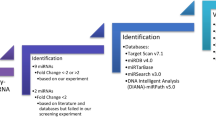 Data for 21 miRNAs were obtained from our previous miRNA array study19. As previously described, samples were sent to Beijing CapitalBio Corporation (China) for processing. The miRNAs were enriched from total RNA using an mirVana® miRNA Isolation Kit (Ambion, Foster City, CA, USA) and labelled using a FlashTag™Biotin RNA Labeling Kit. The labelled miRNAs were used to hybridize each miRNA microarray (Affymetrix). Images of the miRNA microarrays were then acquired using an Affymetrix ® Gene-Chip® Scanner 3000. The obtained signals were transformed to digital signals using image analysis software (LuxScan3.0; Capital Bio), and the free miRNA QC Tool software was used for data summarization, normalization (quantile), and quality control19.