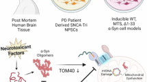 Alpha-synuclein (aSyn) is an abundant cytosolic protein predominantly expressed in presynaptic neuronal terminals1, and has a central role in Parkinson’s disease (PD), the most prevalent neurodegenerative movement disorder. Multiplications and mutations in the SNCA genetic locus, encoding for aSyn, have been reported in inherited forms of PD (reviewed in Petrucci et al.2). Moreover, modified and aggregated aSyn forms are the major components of intraneuronal protein inclusions called Lewy bodies, the pathological hallmark of both familial and sporadic PD3. Interestingly, it was reported that brain regions of PD patients are not only characterized by aSyn-related pathology, but also mitochondrial impairment and high levels of oxidative stress (OS)4,5. This suggests that aSyn may have a specific functional role in mitochondrial homeostasis, with important implications for pathogenesis and disease progression in PD.