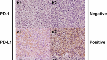 As of now, standardized testing procedures and consistent scoring criteria for PD-1/PD-L1 in solid malignancies by IHC still need to be optimized35,37,38,39. The H-score has been applied in many IHC studies for its semi-quantitative characteristic39,40. Since no standard scoring criteria for PD-1 and PD-L1 are available35,3841, we have used an ROC analysis to determine the cut-off value for PD-1 and PD-L1. However, our results suggested no significant cut-off value for PD-1 based on survival endpoints. The cut-off point was 155 for the PD-L1 H-score by ROC analysis in this study, while an intensity ā„217 or an H score ā„3516 was chosen to be the cut-off value in previous publications. As reported by Zhang et al.16, an H-scoreā>ā0 was applied as the cut-off value for PD-1. Consistently, we also found no significant correlation with the pathological features or prognostic role of PD-1 when the cut-off was defined as an H-scoreā>ā0. We raised the criteria of PD-1 positivity to a staining intensityāā„ā2 in more than 5% of the TILs (H-scoreāā„ā10), similar to the methods reported by DāIncecco et al.24, to minimize the potential interference of non-specific staining for PD-1.