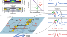 The active region of the terahertz QCL is a hybrid structure that combines the bound-to-continuum for photon emission with the resonant phonon design for fast depletion20,21 as shown in Fig. 1a. The radiative transitions take place from the bound state to the upper state of a continuum band emitting terahertz photons, corresponding to a frequency of 4.1 THz, as depicted by a red arrow. The electrons of the lower continuum band can be depopulated by the fast electron-phonon scattering, as depicted by a yellow arrow, releasing optical phonons. Information on the wafer growth and the device fabrication can be found in the Methods section.
