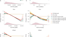 Ozone regulation is clearly an important food-security policy tool for China, with implications for the rest of the world. This study points to the complex relationship between rice yields and ozone pollution. Our results confirm that the gains from ozone regulation for rice in China are large, similar to previous controlled experiments16,27 (Supplementary Methods V and VI). Our contribution lies in providing strong statistical evidence that the gains from ozone regulation are nonlinear and specific to stages of plant growth. Our results suggest that the largest yield gains from ozone regulation occur during PF. Furthermore, days with 8-hour maximum ozone concentration larger than 100 ppb during PF are most harmful to yield. Our study points to an important direction for future research, examining the heterogeneity in crop response to heightened ozone during different stages of plant growth as well as to days with “peak” ozone concentrations. Future controlled experiments as well as longitudinal studies in different countries are required to further examine these aspects of heterogeneity in crop response to surface ozone, which are key to designing ozone regulation policies that reduce threats to global food security.