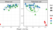 Microcosms consisted of PVC tubes (inner diameter 10 cm, height 20 cm) sealed with PVC lids at the bottom. Each microcosm was filled with 1.6 kg fresh, sieved (4 mm), and defaunated (heating and drying the soil43) soil (pH 8.1, carbon concentration 4.6%, nitrogen concentration 0.3%, C-to-N ratio 15.7; water content 14%) from the grassland field site of the Jena Experiment44. The soil was washed to reduce potential effects of nutrients released by the defaunation process. Seedlings (at least 3 cm in height) of six pre-grown plants (also grown in the defaunated and washed soil mentioned above) were transplanted into microcosms in a defined pattern to enhance interspecific interactions; i.e., plant individuals always had neighbours from other plant species in mixtures. During the experiment, microcosms were irrigated with deionized water with the amount increasing from 50 ml/2d to 50–100 ml/day later in the experiment. Microcosms received the same amount of water because variations in soil water content may co-determine plant diversity effects on soil microorganisms24. No nutrients were added to during the experiment. Microcosms were incubated in a climate chamber (day/night = 16/8 h and 22/18 °C ± 3.5 °C; PAR 400 μE) for 104 days.