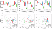 Species-specific root biomass allowed performing additive partitioning58 for calculating belowground net biodiversity effect (NE), complementarity effect (CE), and selection effect (SE). Further, the Shannon diversity index of root biomass was calculated to include the relative abundances of different plant species in the belowground plant diversity measure. General Linear Models were used to test plant species richness effects on shoot biomass, root biomass, Shannon diversity of roots, complementarity effect, selection effect, net biodiversity effect, root exudate richness, root exudate amount, bacterial biomass, fungal biomass, and the ratio between fungal and bacterial biomass (Table 1). Further, linear regressions were used to test the relationships between plant species richness and plant shoot biomass, root biomass, and soil microbial variables as well as between different response variables (Supporting Information). Statistical analyses were performed using Statistica 10 (Statsoft). Given the rather low number of replicates for several variables (root exudates and species-specific root biomass), structural equation modeling could not be used to test our hypotheses59. We ran SEM and piecewise SEM60, but the best model did not meet the criteria based on Fisher’s C statistic (Fisher’s C = 66.93, p-value = 0.009, AIC = 168.93, AICc = −27.51), which was most likely due to a low number of replicates (n = 25; i.e., in 25 microcosms both species-specific root biomass and root exudates were analyzed). Despite the flexibility of using piecewise SEM for lower number of replicates, our model was still invalid due to several variables and paths. Thus, despite the targeted experimental design, most of the present results are based on correlations, which may not necessarily imply causalities. Notably, however, results of structural equation modeling confirmed the significant relationship between the amount of root exudates and fungal biomass (p < 0.046).