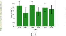 We conducted an on-farm experiment to evaluate the nitrate retention in the surface soil after snowmelt at fields with different annual maximum soil frost depths (Dmax; m). The snow cover manipulation experiment was conducted at two experimental fields at the Memuro Research Station. The soil type is classified as Andisols derived from volcanic ash, which is the major soil type in the Tokachi region. Soil nitrate content at 0–0.40 m depth (kg N ha−1) before snowfall and after snowmelt was set to AutumnN and Spring N, respectively (Table S3). For the statistical modelling, the year of study and experimental field examined were regarded as an independent study plot. Next, because nitrate content is a continuous value and should not have negative values, we assumed that the variations in the observed nitrate content in the surface soil after snowmelt follows the Gamma distribution of shape parameter s and rate parameter r (eq. 8), which are related to the mean μ with s/r and the variance with s/r2. According to the definition of the dispersion parameter ϕ, these parameters are related to the variance with μ2ϕ; thus, s is 1/ϕ and r is 1/ϕμ. We set Dmax as the explanatory variable and AutumnN as the offset term in the linear predictor. Subsequently, the log link function was applied to the linear predictor (eq. 9). The parameters in eq. 8 (s, r) and the coefficients in eq. 9 (βN1, βN2) were estimated using the ‘glm’ function of R software package29.