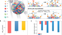 Alloying Pt with cheaper metals (Co, Cu, Ni and Fe) is an effective approach for tailoring the electronic and geometric heterostructures to improve activity and stability7,8,9,10,11. Compared with various Pt bimetallic alloys (with Cu, Ni or Fe), the Pt-Co alloys are generally more stable due to the higher degree of alloying of cobalt and platinum3,12. Furthermore, cobalt atoms embedded into the Pt lattice give rise to compressive strain in the lattice and narrow the distance of the Pt-Pt bond. Impressively, the different electronegativity values (Pt is 2.28 and Co is 1.88) result in filling the Pt d-band and downshifting of d-band centre. Thereby, more active sites of the catalysts are exposed while weakening the binding of oxygenated species (-OH and -OOH) due to the electronic charge transfer from Co to Pt13,14,15,16,17. Therefore, the catalytic performance of Pt-Co alloys are enhanced with their special synergistic effects. For example, three-dimensional Pt-Co alloy networks showed high activity and high stability ascribed to their structure stability and synergistic effects18. Furthermore, electronic modification by Co introduced into Pt3Co, Pt-Co nanowire assemblies exhibited superior CO tolerant behaviour compared to Pt NPs15. Thus, the efficient synthesis of high-quality, uniformly dispersed Pt-Co alloy NPs is a promising strategy for developing advanced hybrid catalysts in DMFCs.