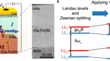 A quantum well system for spin transistor channel3,18 was epitaxially grown in molecular beam epitaxy system. The vertical structure of the channel is InAs (2 nm)/In0.52Al0.48As (20 nm)/In0.53Ga0.47As (13.5 nm)/InAs quantum well (2 nm)/In0.53Ga0.47As (2.5 nm)/In0.52Al0.48As (6 nm)/n+ In0.52Al0.48As (7 nm)/In0.52Al0.48As buffer (300 nm)/semi-insulating InP (001) substrate. The In0.52Al0.48As and In0.53Ga0.47As cladding layers were the potential barrier to confine the electrons in the quantum well. The channel was defined using photolithography and an Ar ion milling. The patterns for ferromagnetic source and drain electrodes were defined by electron beam lithography. To adjust the interfacial resistance, parts of the cladding layers were milled out and then Co84Fe16/Ir22Mn78 bilayers were deposited using sputtering. The transistor channel and ferromagnetic electrodes were covered by a 100 ± 10 nm thick SiO2 with a gate electrode.