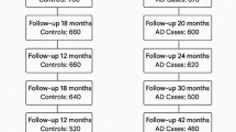 Analyses were adjusted for age (years), education (⩽ 12 and >12 years), current smoking status, body mass index (BMI; calculated as weight in kilograms divided by height in metres squared) and total energy intake (kcal). Country of birth was used as a dichotomous variable (Australian or other). APOE genotype was also used dichotomously: the absence of ɛ4 allele vs presence of either one or two ɛ4 alleles. A history of diabetes, hypertension, angina, heart attack and stroke were defined by self-report.