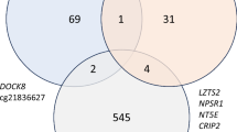 DMPs were annotated to a total of 60 genes, which were examined further to identify underlying genetic networks and enriched biological pathways. On the basis of GeneMANIA analysis, 57 of the 60 genes were connected to form a compact cluster network (Figure 1c). Our gene ontology analysis also indicated that these genes are involved in a range of biological processes, including regulation of JAK-STAT cascade, vasoconstriction, cytokine-mediated signaling and axonogenesis (2.30E−18<P<3.37E−03; Figure 1d). Of note, enriched cellular components included axon part, post-synaptic membrane and dendritic spine (2.94E−04<P<3.09E−03; for the full list of GO terms, see Supplementary Table 5).