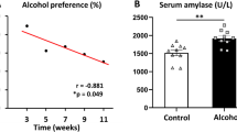 Mice were initially housed four per cage in a temperature- and humidity-controlled environment with ad libitum access to food (LabDiet 5001; LabDiet, Richmond, IN, USA) and water on a 12/12 light/dark cycle with lights ON at 0600 hours. Prior to drinking studies, all mice were transferred to the procedure room (lights OFF at 0800 h), and allowed to acclimate to single housing and the reverse light–dark cycle for 7 to 14 days. During acclimation, mice received access to two 25 ml glass cylinder bottles with metal sipper tubes (both containing water) on either side of the cage, with food evenly distributed across the cage top. Measurements of body weight, water, and food consumption during acclimation allowed calculation of baseline consummatory variables. The side of the alcohol or tastant bottle was fully counterbalanced across groups. Furthermore, the side of the alcohol or tastant bottle was regularly switched to avoid the potential confound of a side bias. Water-only control mice experienced identical bottle configurations and patterns of bottle switching. Alcohol (95%) was diluted in tap water to the desired concentrations and expressed in volume/volume units. Protocols were approved by the Oregon Health & Science University Institutional Animal Care and Use Committee, performed with adherence to the NIH Guidelines for the Care and Use of Laboratory Animals.