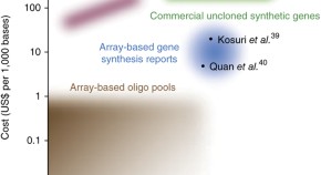 This Review discusses large-scale de novo DNA synthesis via oligos or arrays, describes gene assembly and error correction and considers applications for large-scale DNA synthesis.