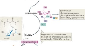 Many cellular proteins are reversibly modified byO-linked N-acetylglucosamine (O-GlcNAc) moieties on Ser and Thr residues. Studies on the mechanisms and functions of O-GlcNAcylation and its links to metabolism reveal the importance of this modification in the maintenance of cellular and organismal homeostasis.