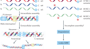 Proper glomerular basement membrane (GBM) structure and function are required for appropriate glomerular filtration and abnormalities in the α3α4α5 (α345) network of collagen IV — a GBM component — can lead to disease. New insights into the mechanisms underlying α345 hexamer assembly and function from genetic and structural data identify possible targets for therapeutic modulation.