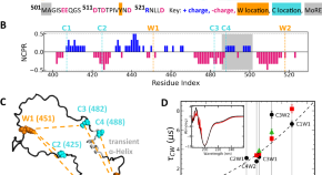 The measles virus relies on the intrinsically disordered domain of its nucleoprotein, NTAIL, to bind the polymerase complex responsible for viral transcription and replication, but the role played by disordered regions away from the binding site is not clearly understood. Here, through a combination of experiments and simulations, the authors show that transient and non-local interactions between disordered regions distant in sequence influence the conformational preferences of the binding sites and the folding and availability of its molecular recognition element, affecting viral replication kinetics.