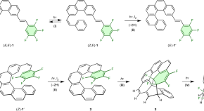 Domino reactions can offer efficient synthetic access to complex products, but characterisation of unstable intermediates is often not possible. Here the photochemical domino cyclisation of tetrafluorostilbene is characterised by NMR and X-ray crystallography of each intermediate, and shown to terminate in an unusual double fluorine atom transfer reaction.