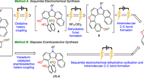 Heterodehydrohelicenes exhibit attractive chiroptical properties, but their direct construction by asymmetric synthesis remains very challenging. Here, the authors report the electrochemical sequential synthesis of azaoxadehydro[7]helicenes from arenols through oxidative hetero-coupling followed by dehydrative cyclization and intramolecular C–C bond formation.