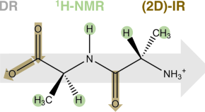 Studies of ion-specific effects on oligopeptides are largely dependent on model peptides and experimental sensitivities. Here, the authors study the ion-specific effects on L-alanyl-L-alanine by combining dielectric relaxation, 1H-NMR and 2D infrared spectroscopy.