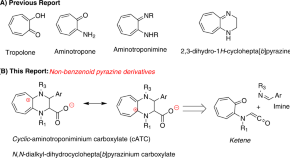 Tropolones harbor a non-benzenoid aromatic scaffold and display a wide-range of bioactivities, however, the cyclic derivatives of aminotroponimines remain underexplored. Here, the authors develop a one-pot synthesis of NAlkyl/CAryl-substituted cyclic-aminotropiminium carboxylate derivatives with promising anticancer properties.