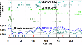Humid climate in Northern Africa prevailed during interglacial periods over the past 300,000 years and was mainly driven by southward shifts and intensification of mid-latitude westerlies and the Mediterranean storm track, based on speleothem records from Tunisia.
