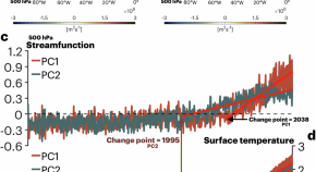 Anthropogenic warming reorganises North Atlantic atmospheric circulation patterns, producing a shift towards more positive North Atlantic Oscillation phases, according to analysis of climate model simulations.